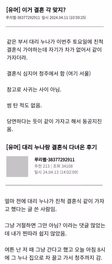 같은 부서 대리 누나가 친척 결혼식 같이 가자고 하는데 이거 그린라이트임? 후기의 후기