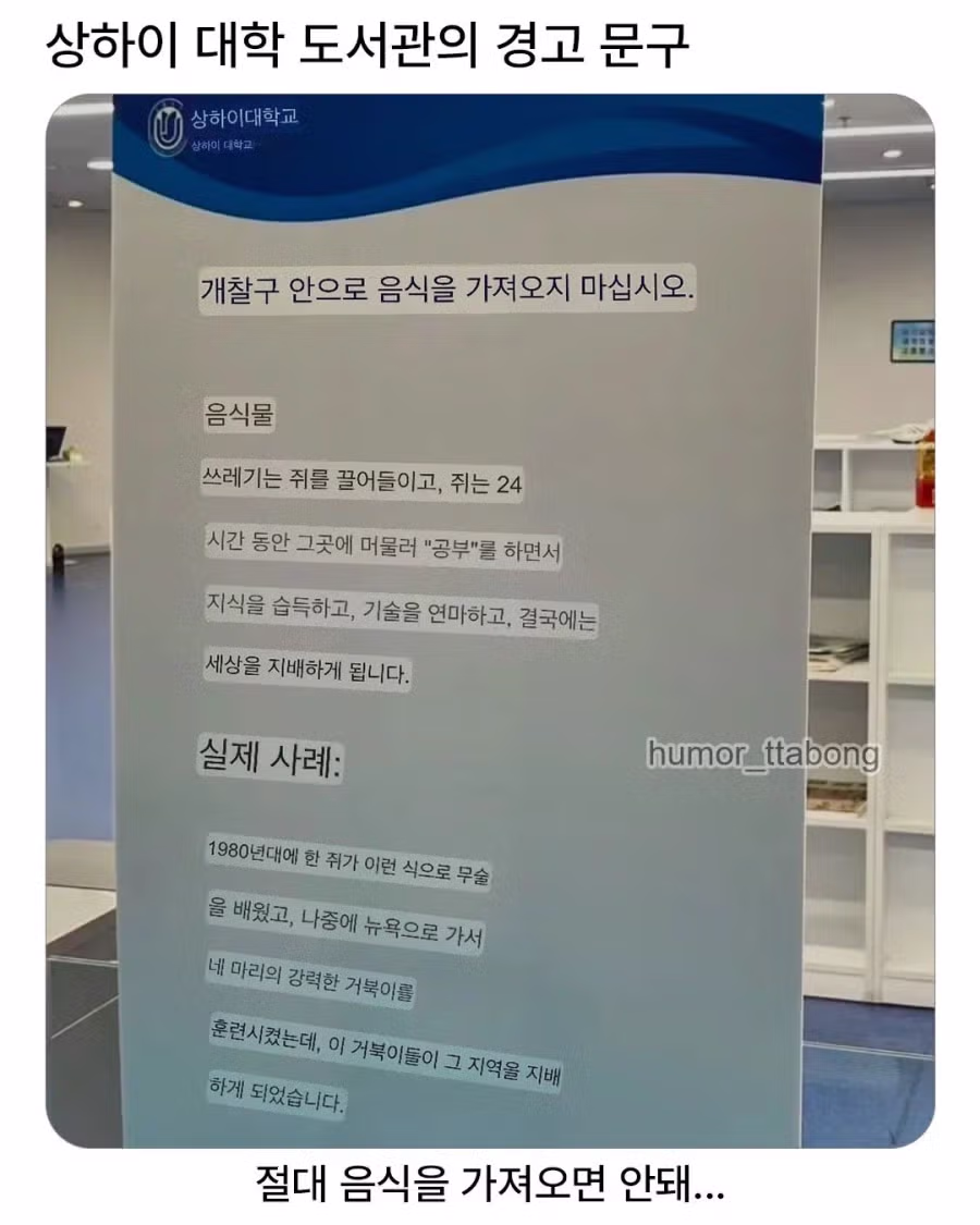 상하이 대학 도서관의 경고문