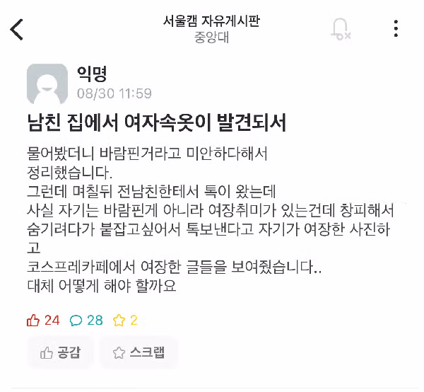 남친 자취방에서 여자속옷이 발견됨