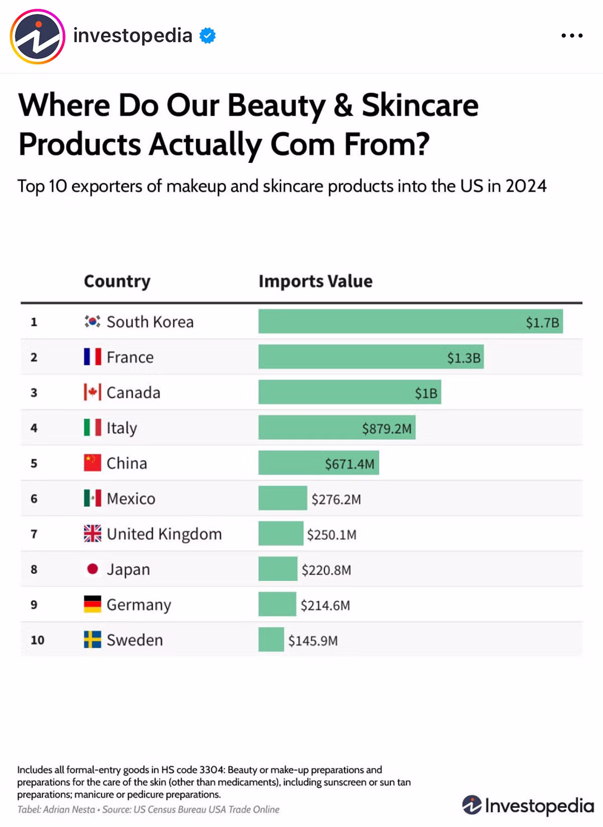 미국 화장품 수입 1위 한국 2위 프랑스 3위캐나다
