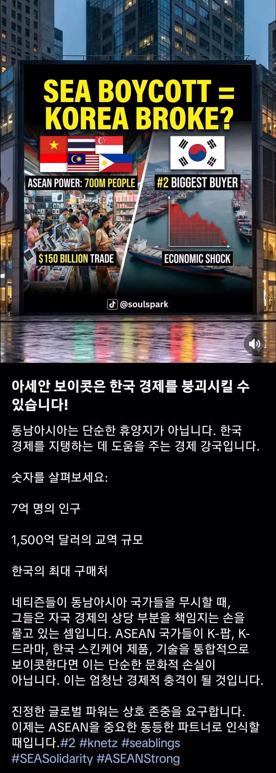 아세안 국가들 커뮤에서 노노코리아 운동 시동거는듯