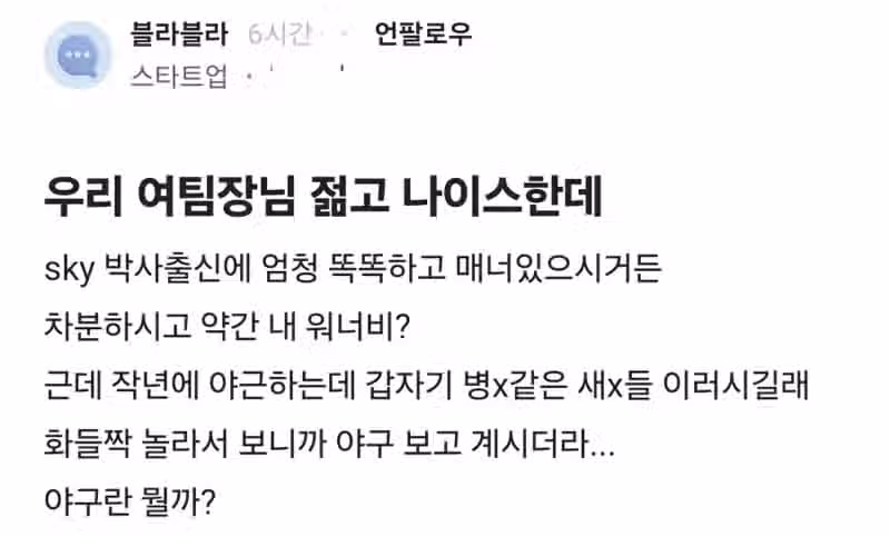 우리팀 여팀장님 젊고 나이스한데
