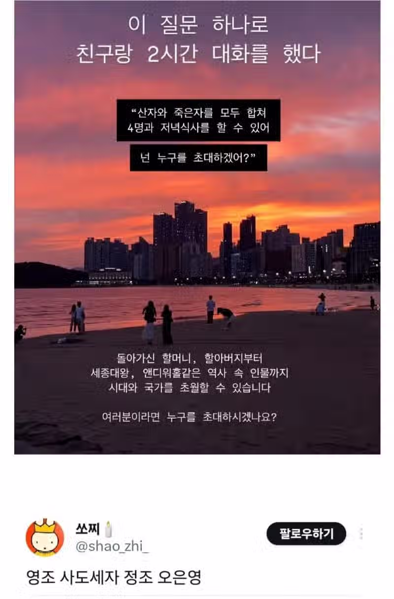 산 자와 죽은 자 상관 없이 4명을 한자리에 불러낼 수 있다면?