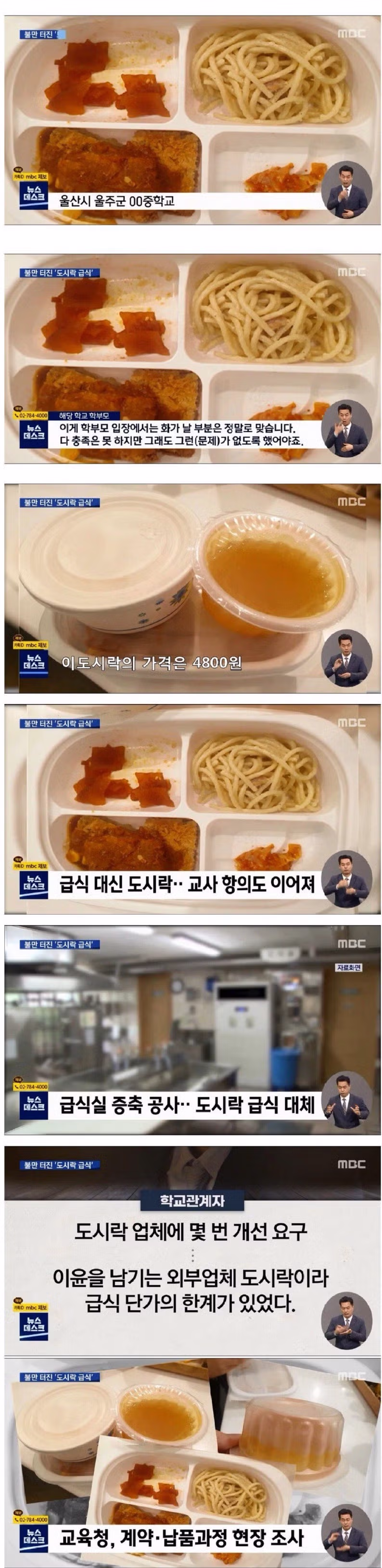 교사들 마저 빡쳐서 항의한 학교 도시락