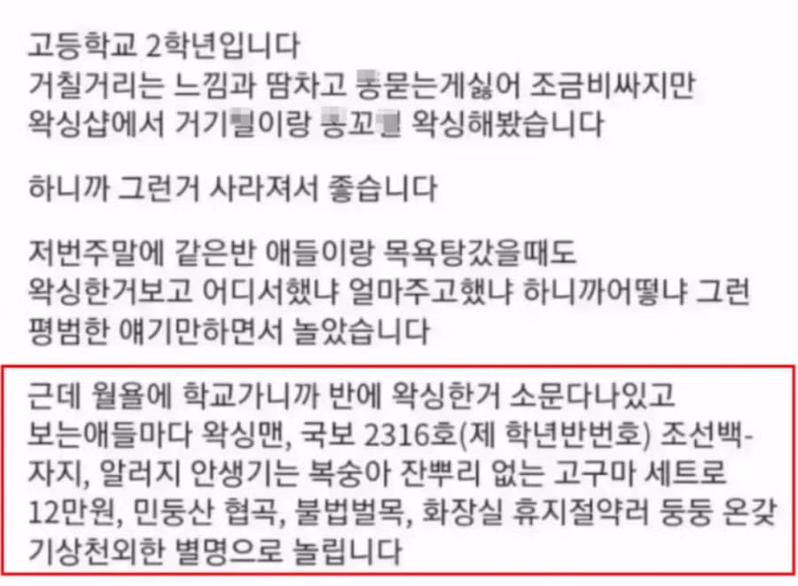 왁싱 받은게 소문난 고등학생 후기.jpg
