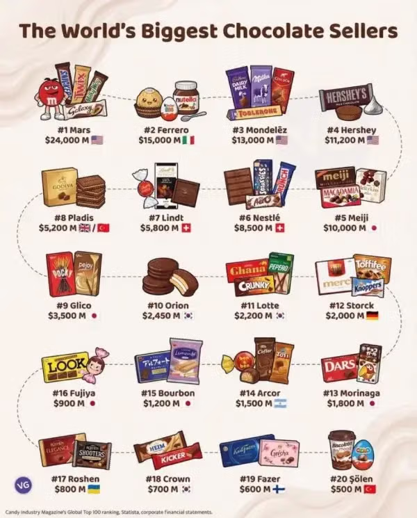 세계에서 제일 큰 초콜릿 회사 순위.