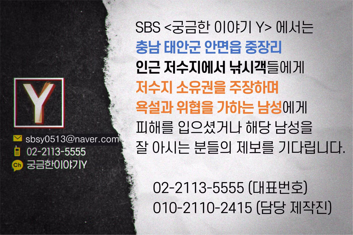 SBS에서는 태안 낚시객들에게 위협을 가하는 남성의 제보를 기다립니다.