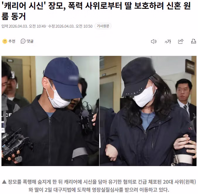 '캐리어 시신' 장모, 폭력 사위로부터 딸 보호하려 신혼 원룸 동거