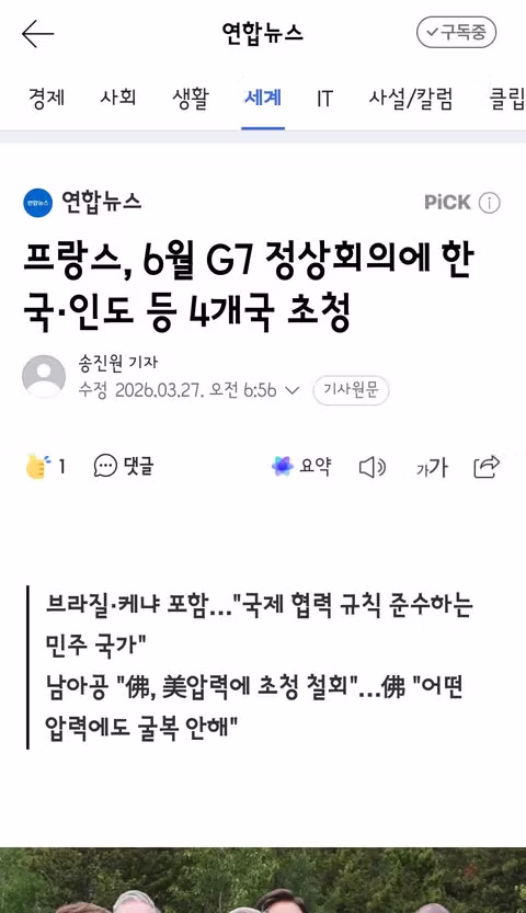 靑 "프랑스, G7 정상회의에 한국 초청…참석 여부 검토 중"