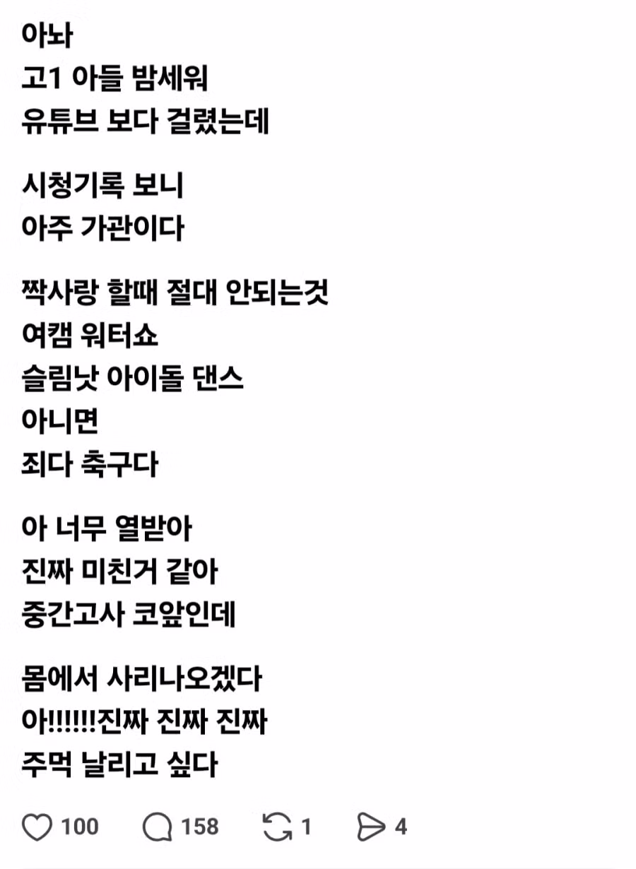 고딩 아들에게 주먹 날리고 싶다