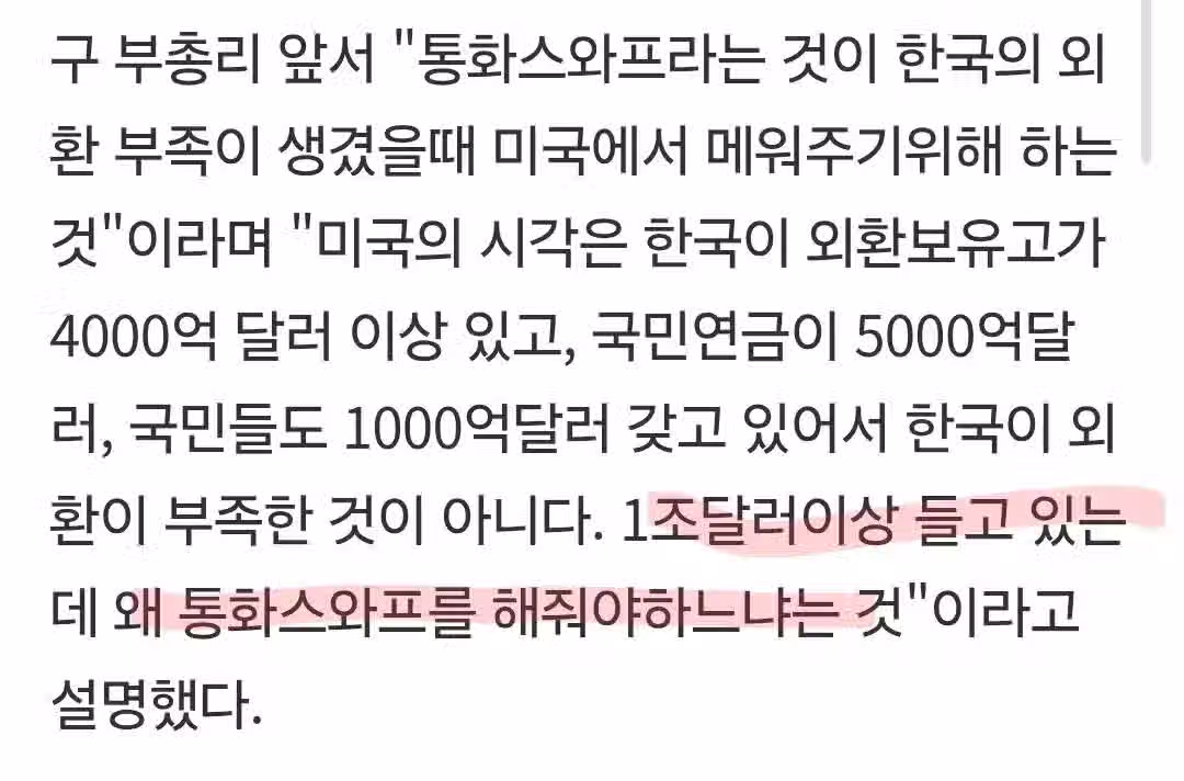 미국이 한미 통화 스와프 거절한 이유