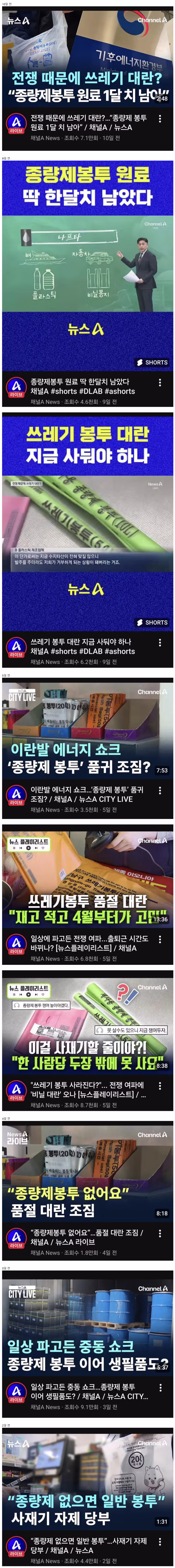 음. 쓰레기들이 많아지니 쓰레기봉투도 부족한 게 맞긴 한데