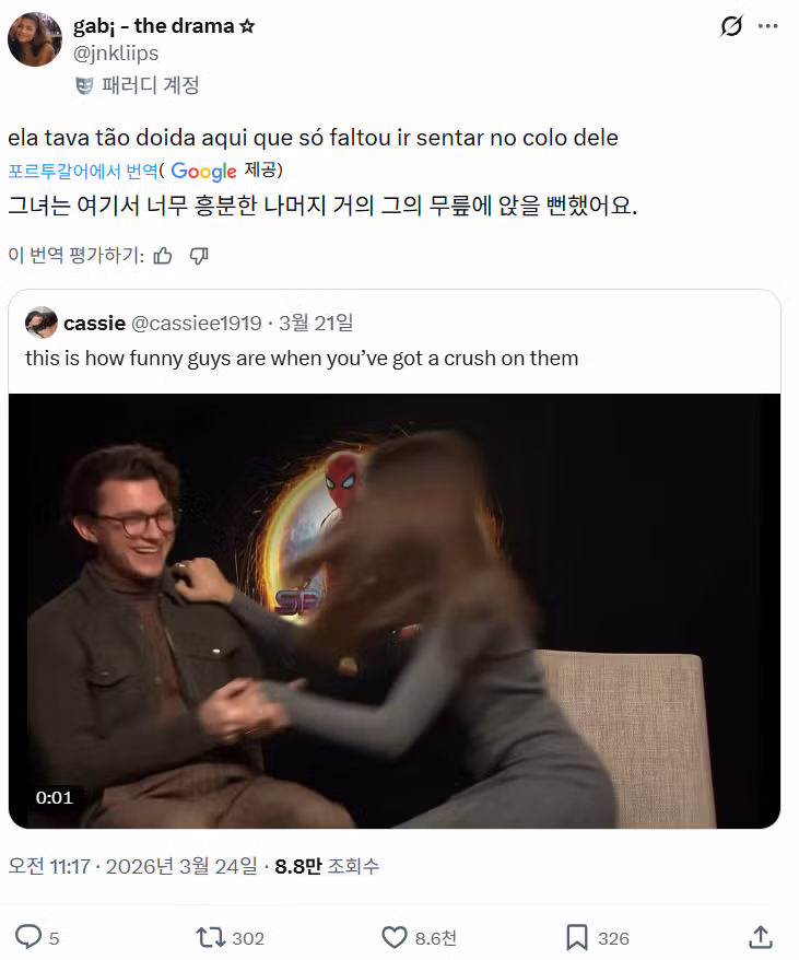 톰 홀랜드 하는 말마다 빵터져서 밈된 젠데이아