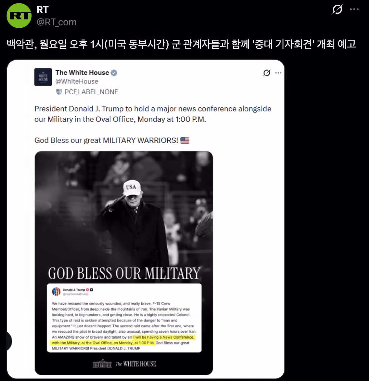 [속보] 백악관, '중대 기자회견' 예고