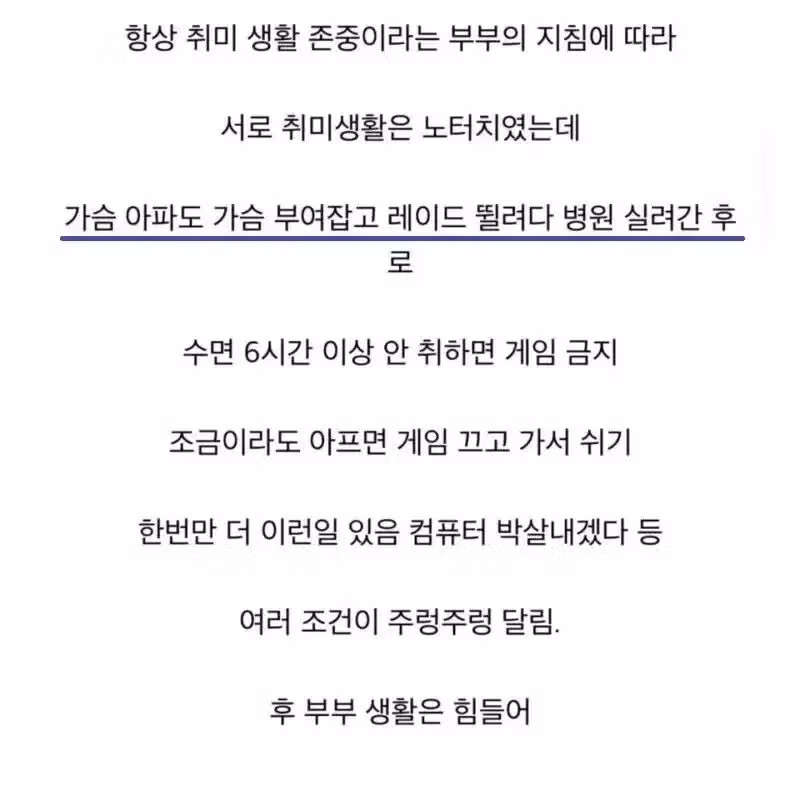 남편 취미인 게임에 자꾸 조건을 거는 와이프