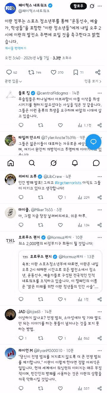 이란 : 내일 전국 발전소 주변으로 청소년들 모일것을 촉구