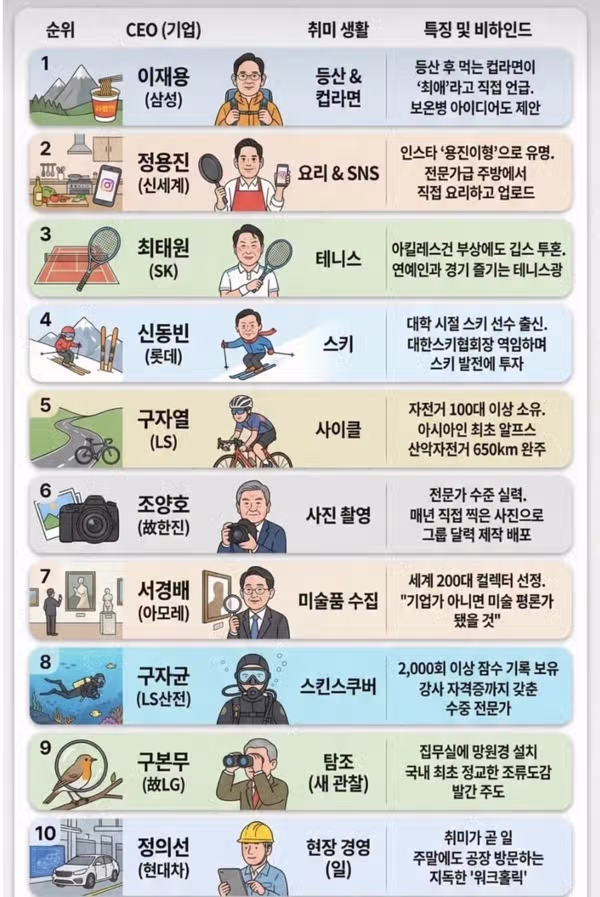 한국 재벌들의 취미 모음