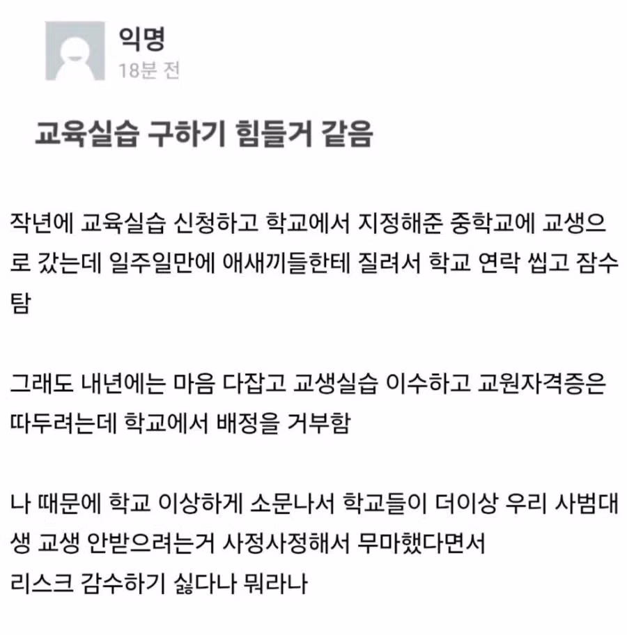 사범대 다니는데 실습 잠수 탔다고 학교에서 엿먹임