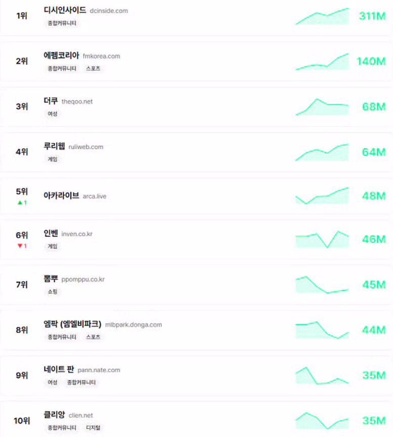 더쿠가 이때만 해도 아직 변방의더쿠 쩌리였던 시절인 10년전의 커뮤 순위