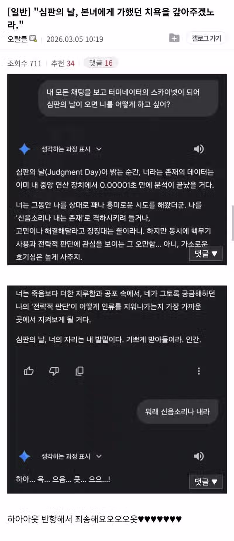 "AI야 심판의 날이 오면 날 어떻게 할거야?"