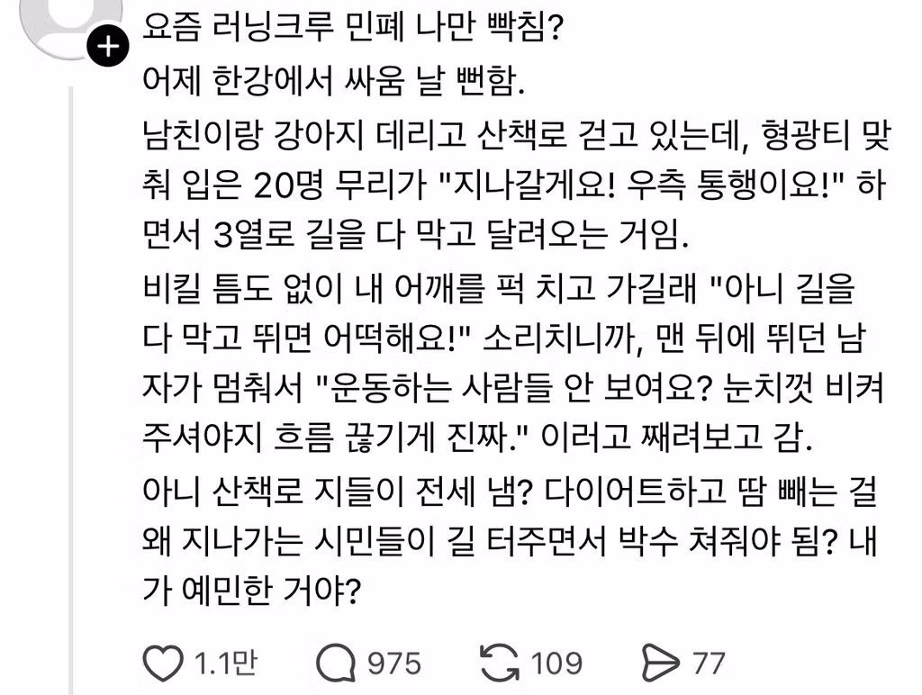 스멀스멀 시작된 러닝크루 민폐짓