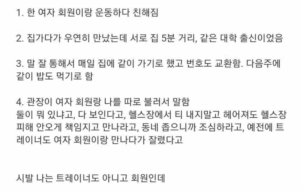 헬스장 관장한테 경고받은 회원