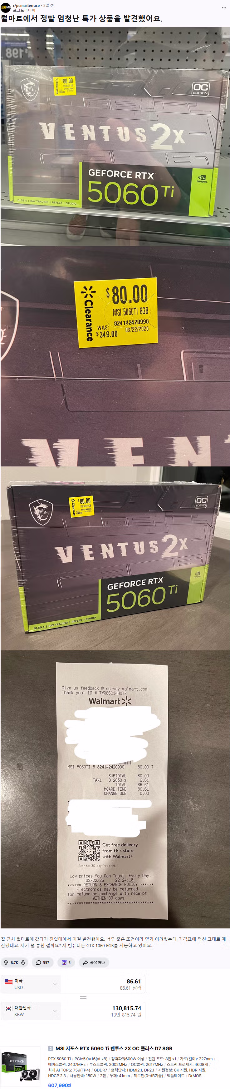 월마트에서 그래픽카드를 싸게 샀다는 사람
