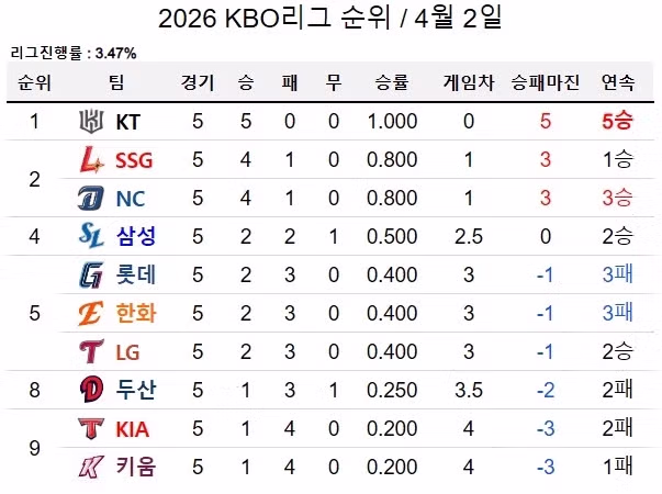 kbo 순위 근황