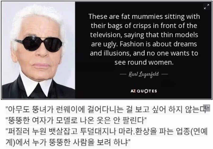 샤넬 수석 디자이너 "아무도 뚱녀가 런웨이에 서는 걸 원치 않는다"