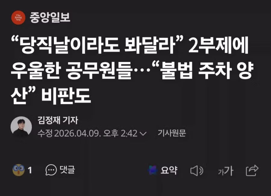 차량 2부제 당직및 야간 근무자는 좀 제외가 필요한데