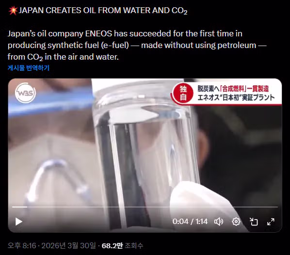 물과 이산화탄소로 석유를 생산하는데 성공한 일본