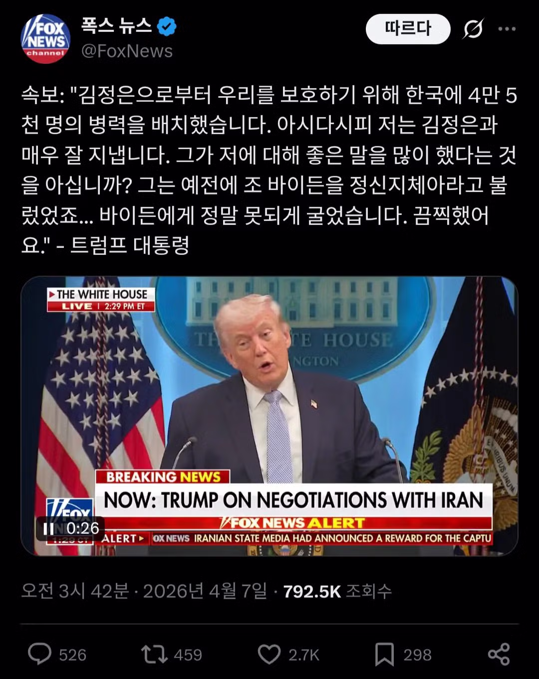 트럼프 연설) "나는 김정은과 친구다"
