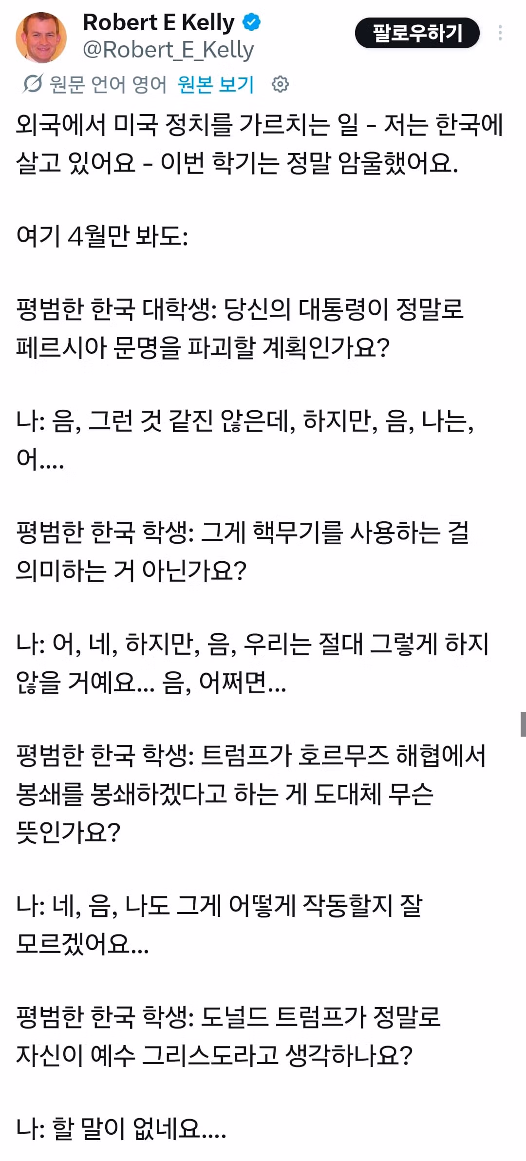 한국에서 미국인이 정치외교학 가르칠때 제일 힘든점.jpg