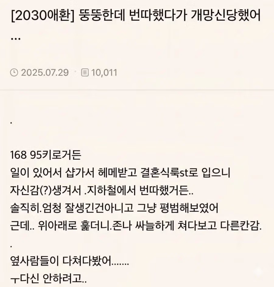 뚱뚱한데 번따했다가 개망신 당했어