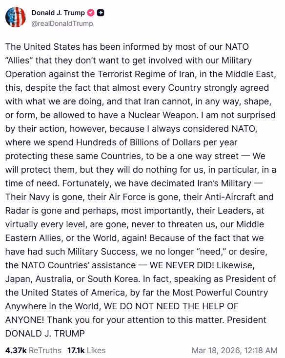 트럼프 “난 세계서 가장 강력한 국가의 대통령, 도움 필요 없다”