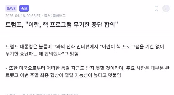 속보) 이란, 핵 프로그램 무기한 중단 합의