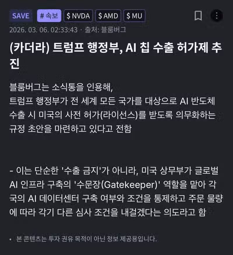 (카더라) 트럼프 행정부, AI 칩 수출 허가제 추진