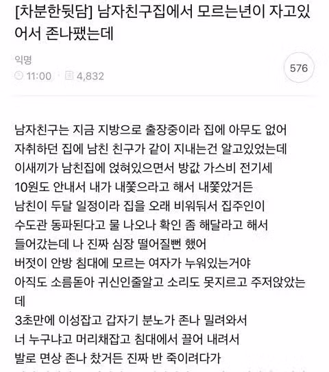 여시에서 난리난 남친집에서 자고 있던 모르는 여자.jpg
