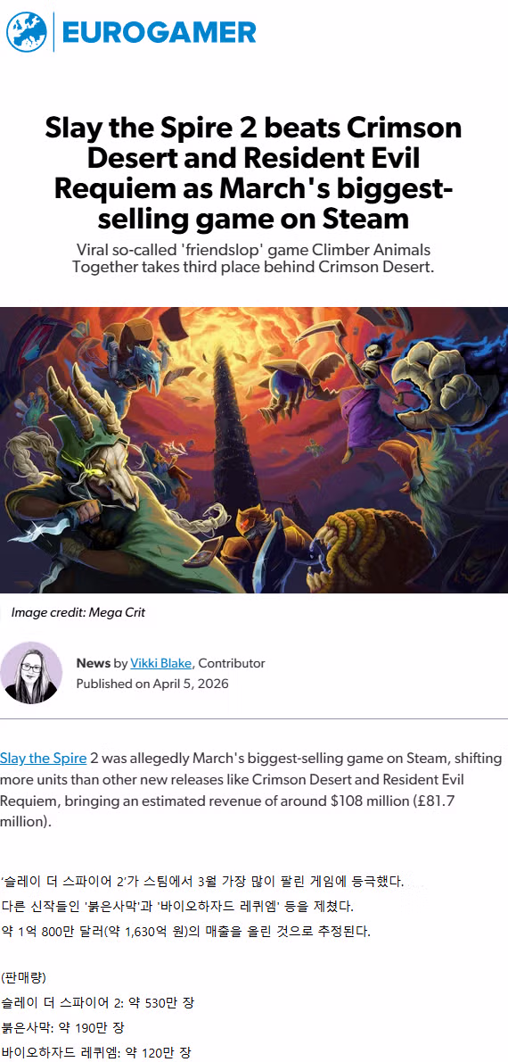 ‘슬레이 더 스파이어 2’, 스팀에서 3월 가장 많이 팔린 게임 등극
