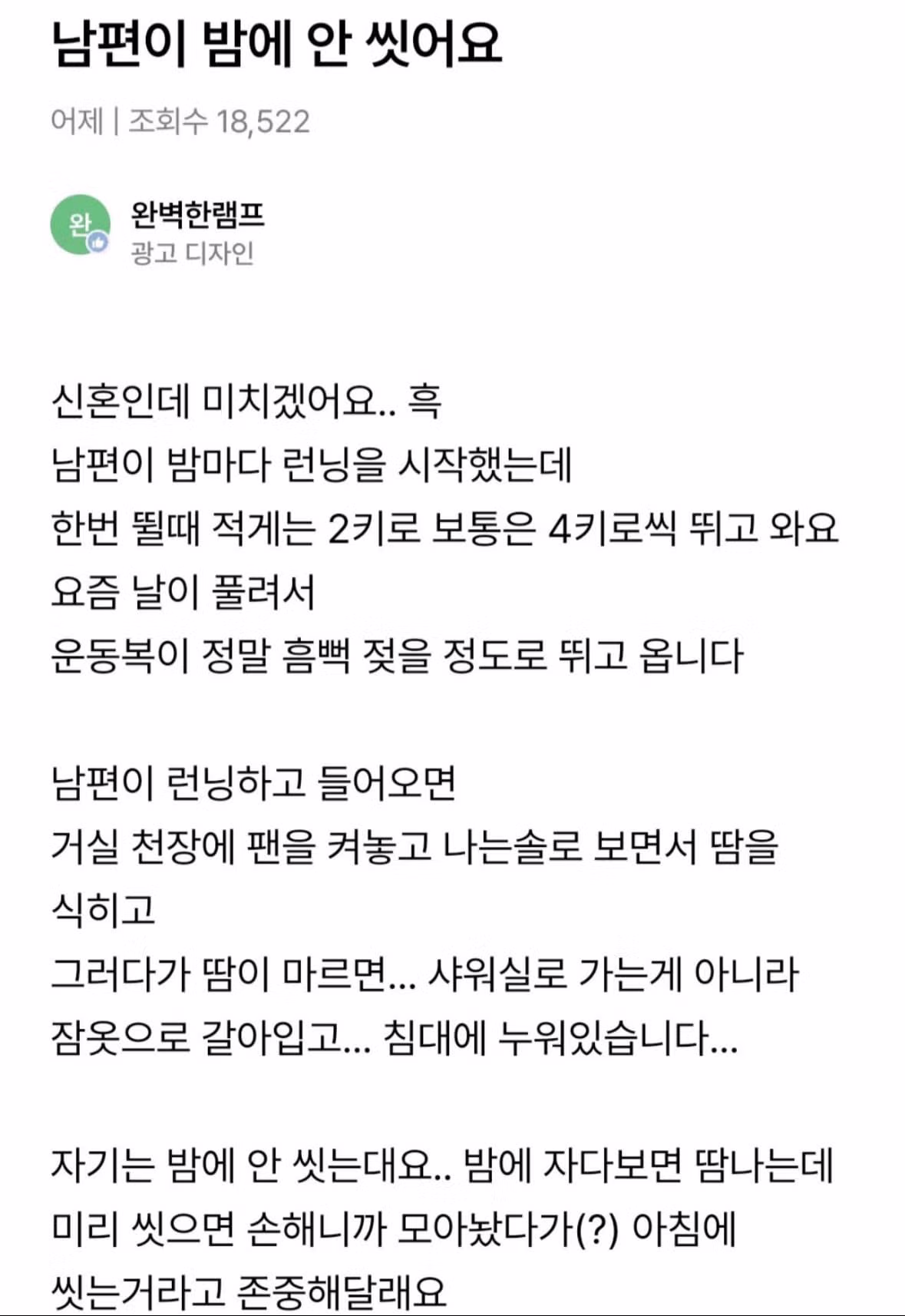 미친넘이네. 땀 났는데 안 씻는다니;;;