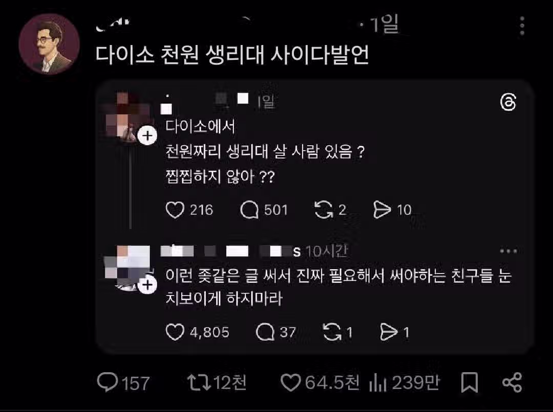 다이소 천원 생리대 사이다발언