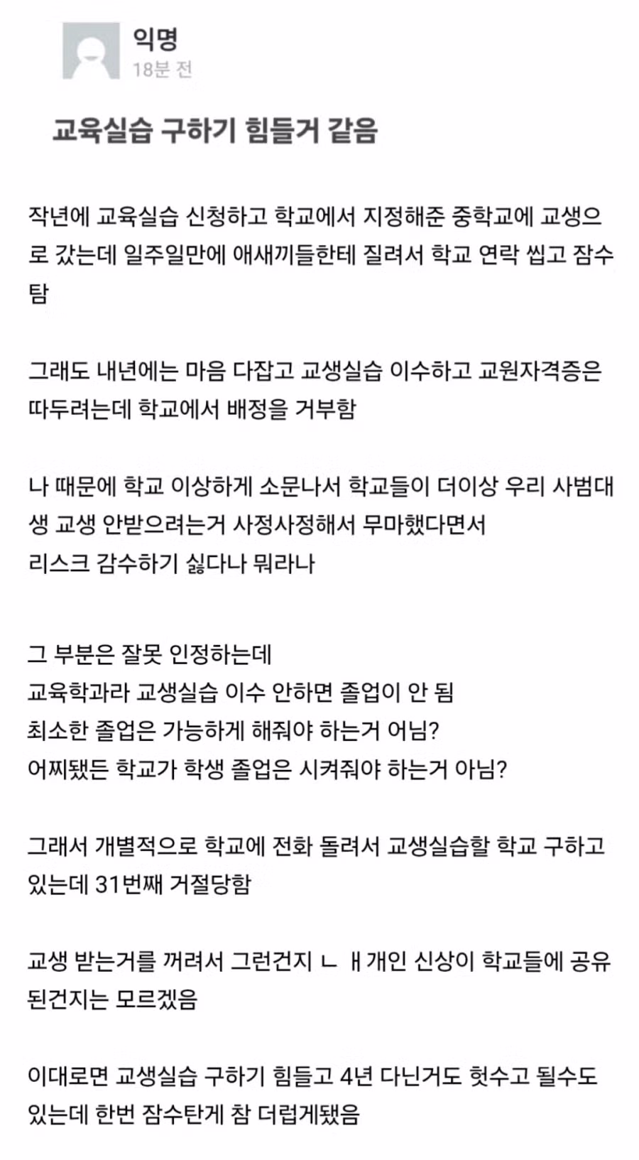 교생실습 노쇼했다가 블랙리스트 찍힌 사범대생.jpg