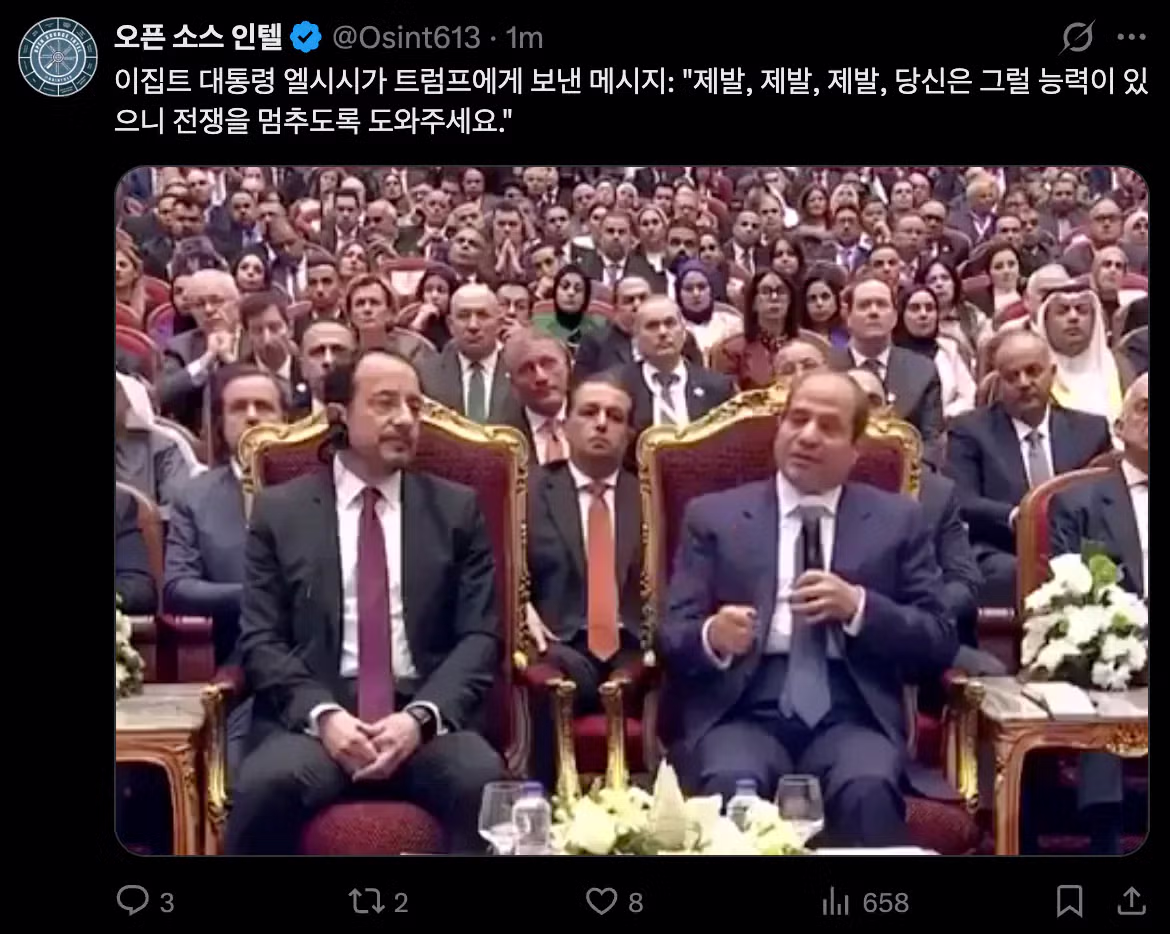 [속보] 이집트, "트럼프 제발 제발 전쟁을 멈추도록 도와주세요"