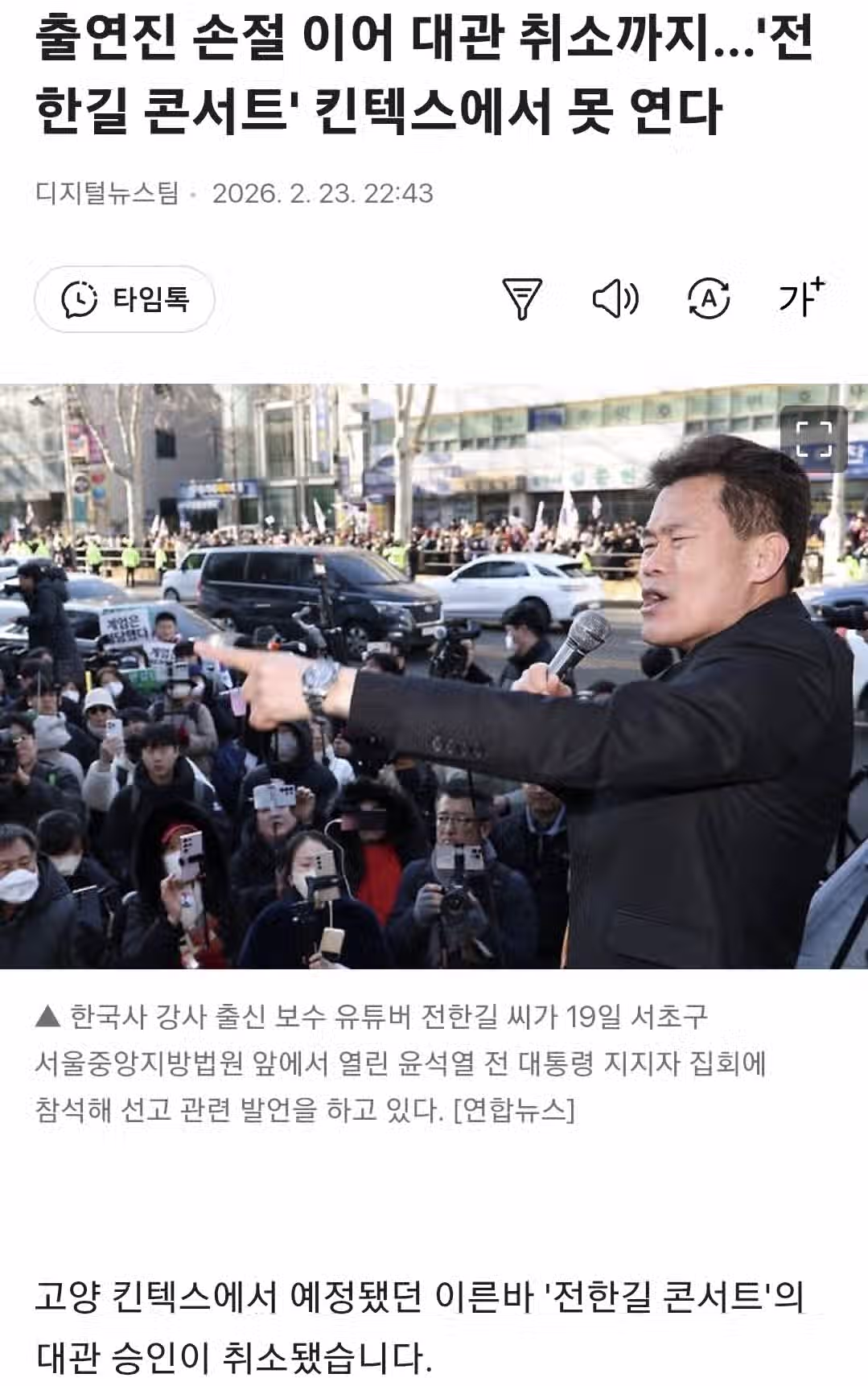 전한길 콘서트 취소 엔딩