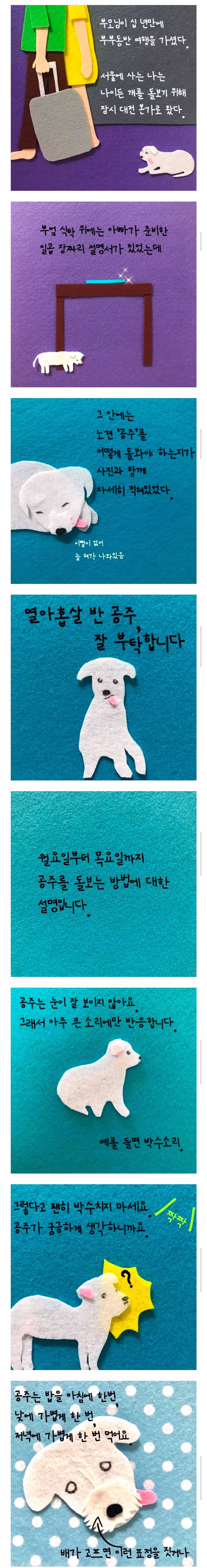 부모님이 십 년만에 부부동반 여행을 가셨다 서울에 사는 나는 나이든 개를 돌보기 위해 잠시 대전 본가로 왔다
