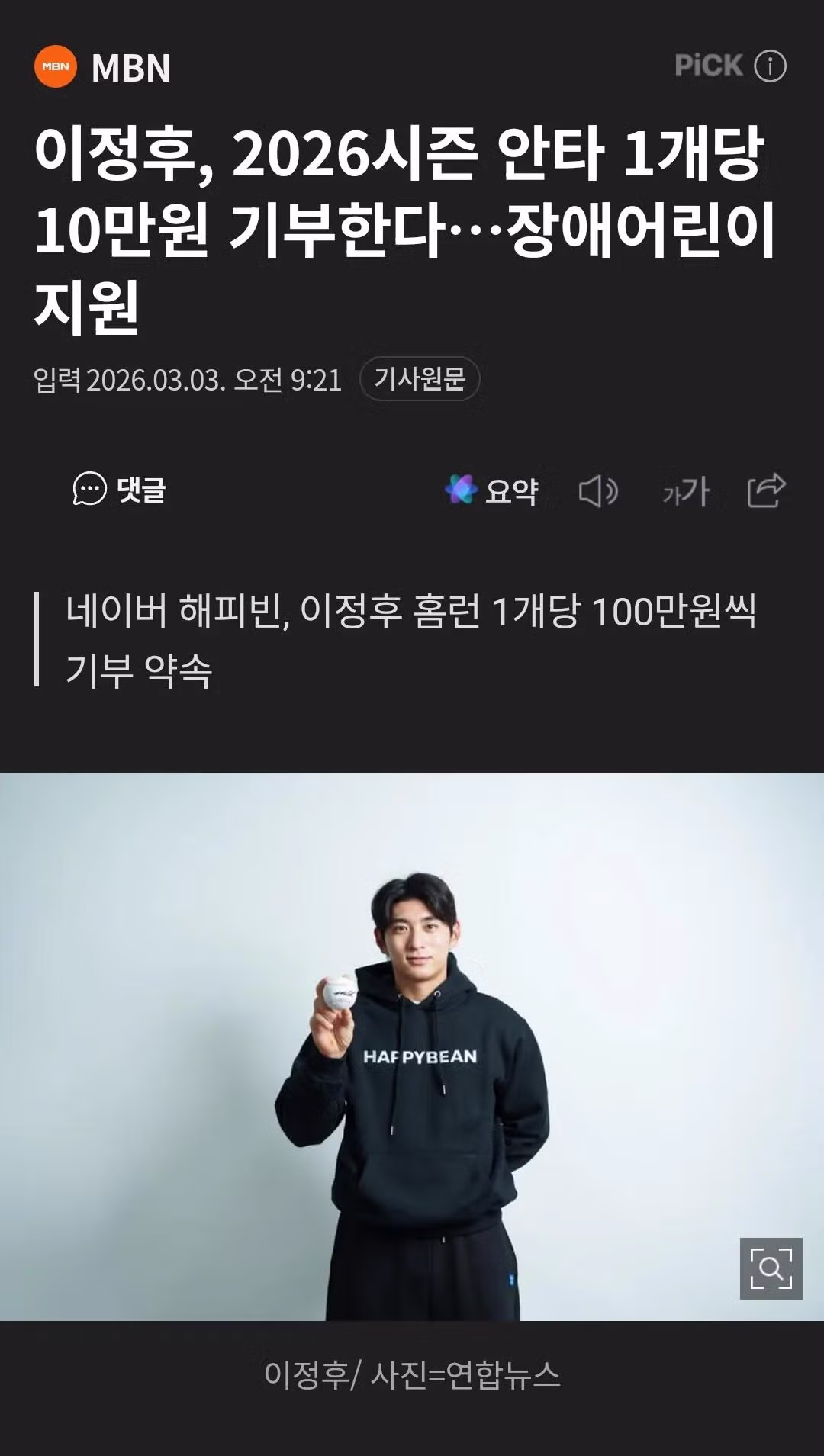 무안타 나올 때마다 100만원 기부하는 게 더 많겠다