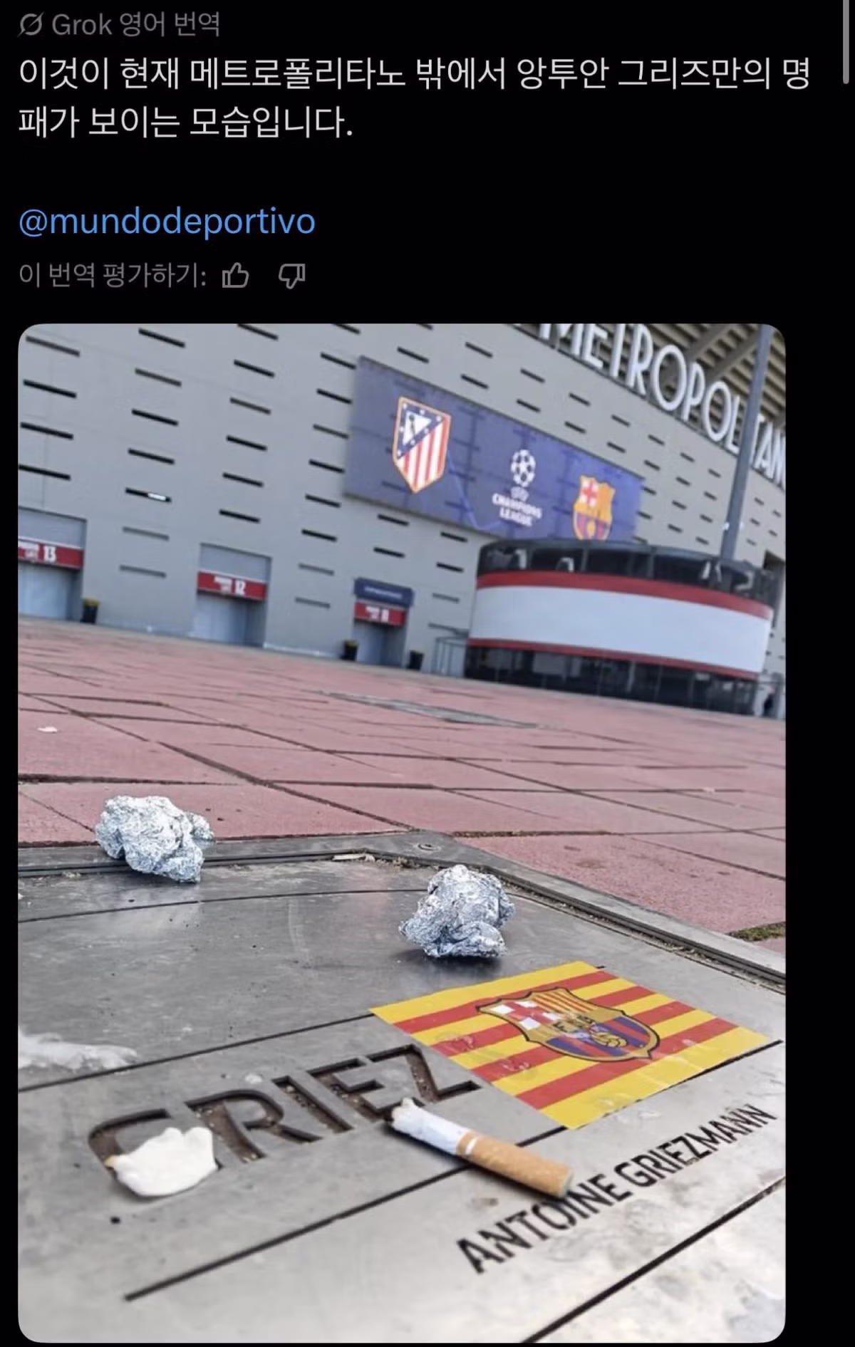 오늘자 경기전 테러당한 그리즈만 명패 근황 ㄷㄷㄷㄷㄷㄷㄷㄷㄷㄷㄷ.jpg