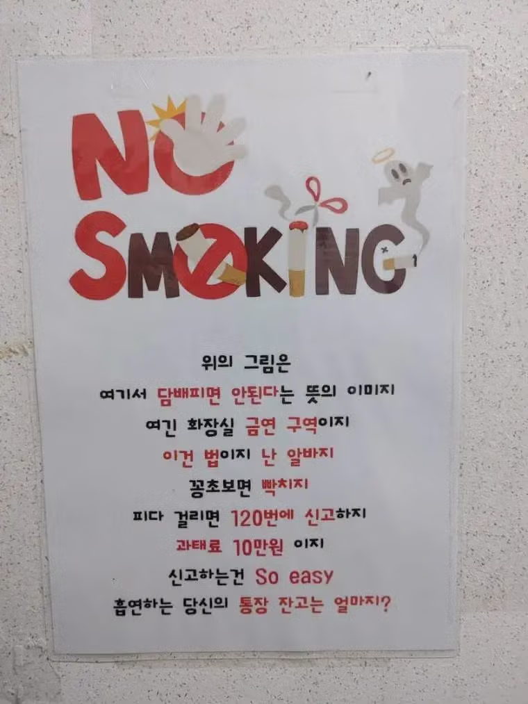 어느 pc방 화장실 금연 경고문