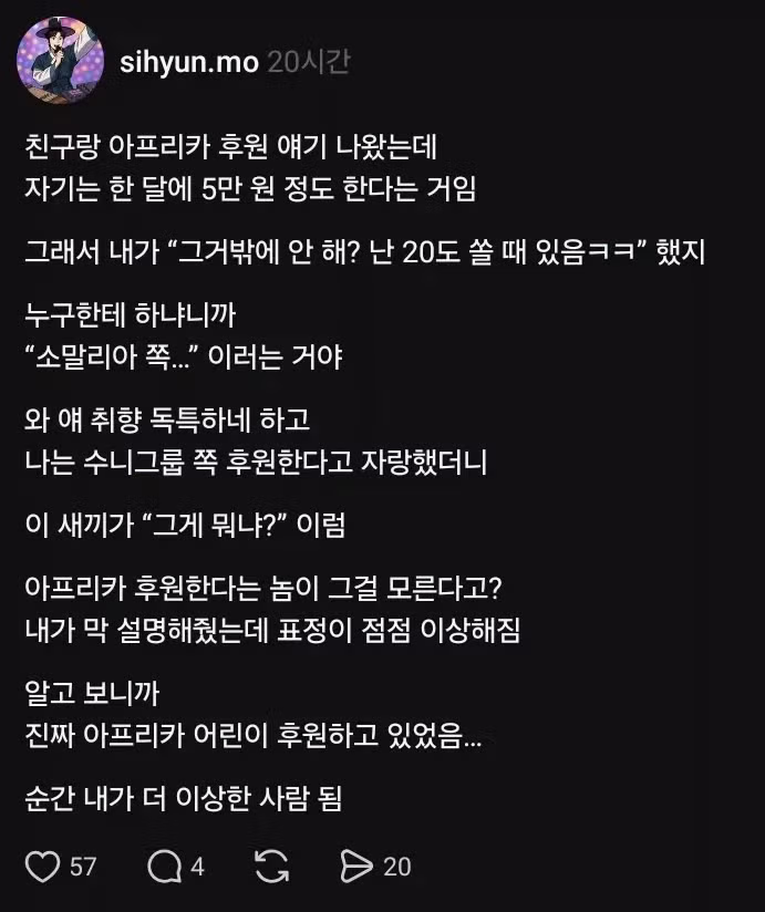아프리카 후원에 월 5만원 쓰는 친구.jpg