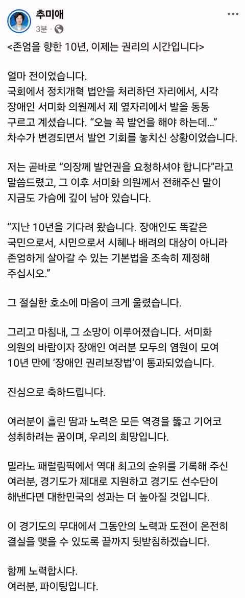 추미애 '진심으로 축하드립니다.'